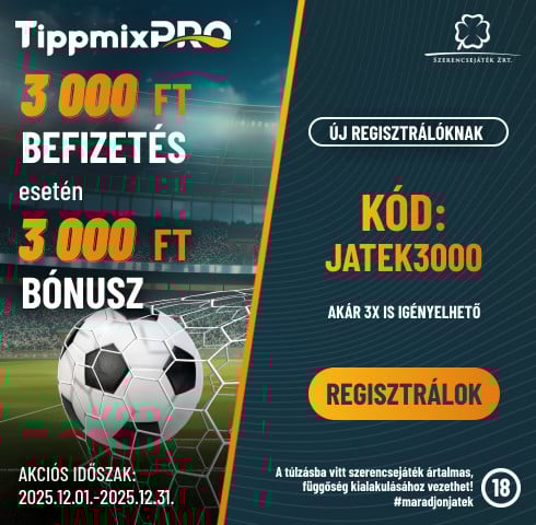 Regisztrálj egyedi bónuszkóddal, ÉS ZSEBELD BE a 3000 Ft értékű INGYENES FOGADÁST (akár 3X is igényelhető).