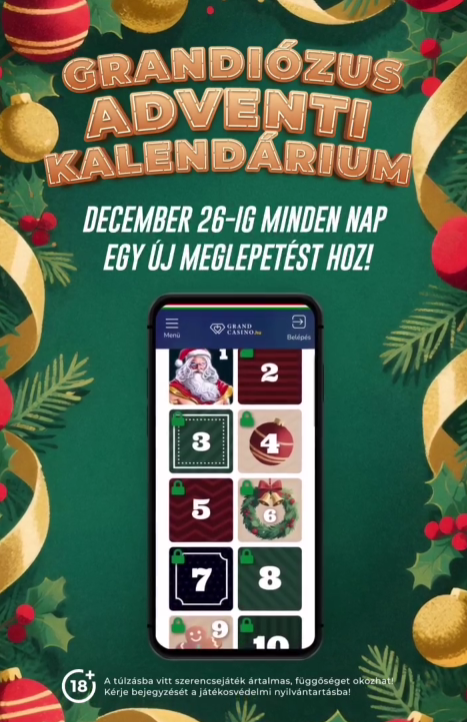 26 ünnepi nap tele ünnepváró, tematikus ajándékokkal és ünnepi izgalmakkal a GrandCasino.hu oldalon! 💫