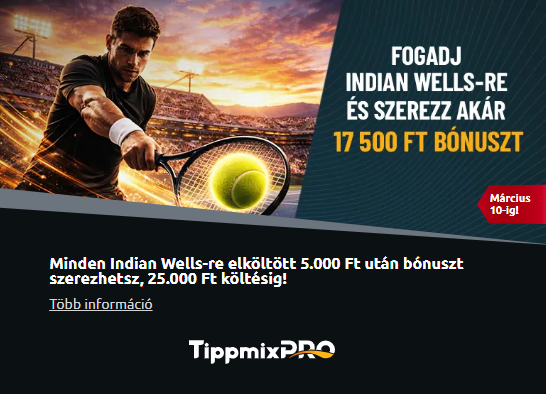 Indul az év egyik legjobban várt teniszversenye, az Indian Wells-i Masters, és ezzel együtt megérkezett a legújabb tenisz bónusz is! Ha szereted az izgalmakat és szívesen fogadnál Marozsán Fábián vagy a világelit meccseire, ez az akció neked szól.