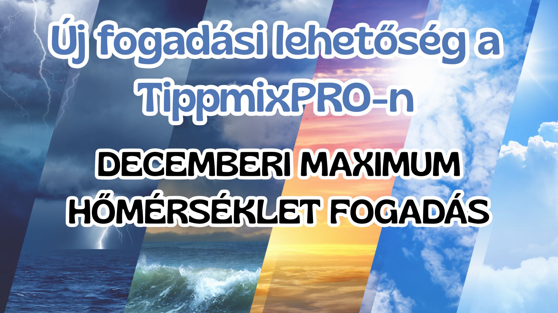 Örömmel jelentjük, hogy ez egy ÚJ fogadási lehetőség a TippmixPrón! A sportfogadás határainak kitolásával a TippmixPro speciális Időjárás fogadása a legmagasabb országos napi maximum-hőmérsékletre vonatkozóan azonnal a statisztikák és a klímaváltozási trendek ütközőpontjába kerül. A fogadási piac két, azonos oddsú kategóriát kínál: Legfeljebb 16,3 °C (1,80-as szorzó) vagy Több, mint 16,3 °C (1,80-as szorzó).